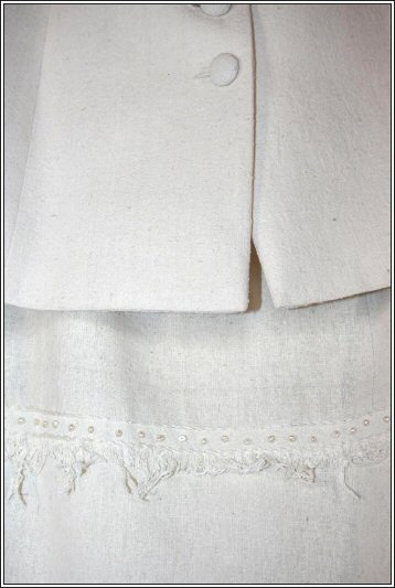 atelier-n damenmode "Ostern" Kostüm für besondere feierliche Anlässe, 100% wild Seide in Haute Couture Anfertigung. Am Rock aufwendiger Ziernaht mit echten Süßwasser Perlen. DetailZiernaht mit echten Süßwasser Perlen. vor→ Zur Übersicht
