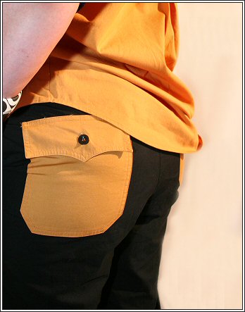 Detail 2. Brustaschen vom Herrenhemd haben ihren Platz an der ... Hose